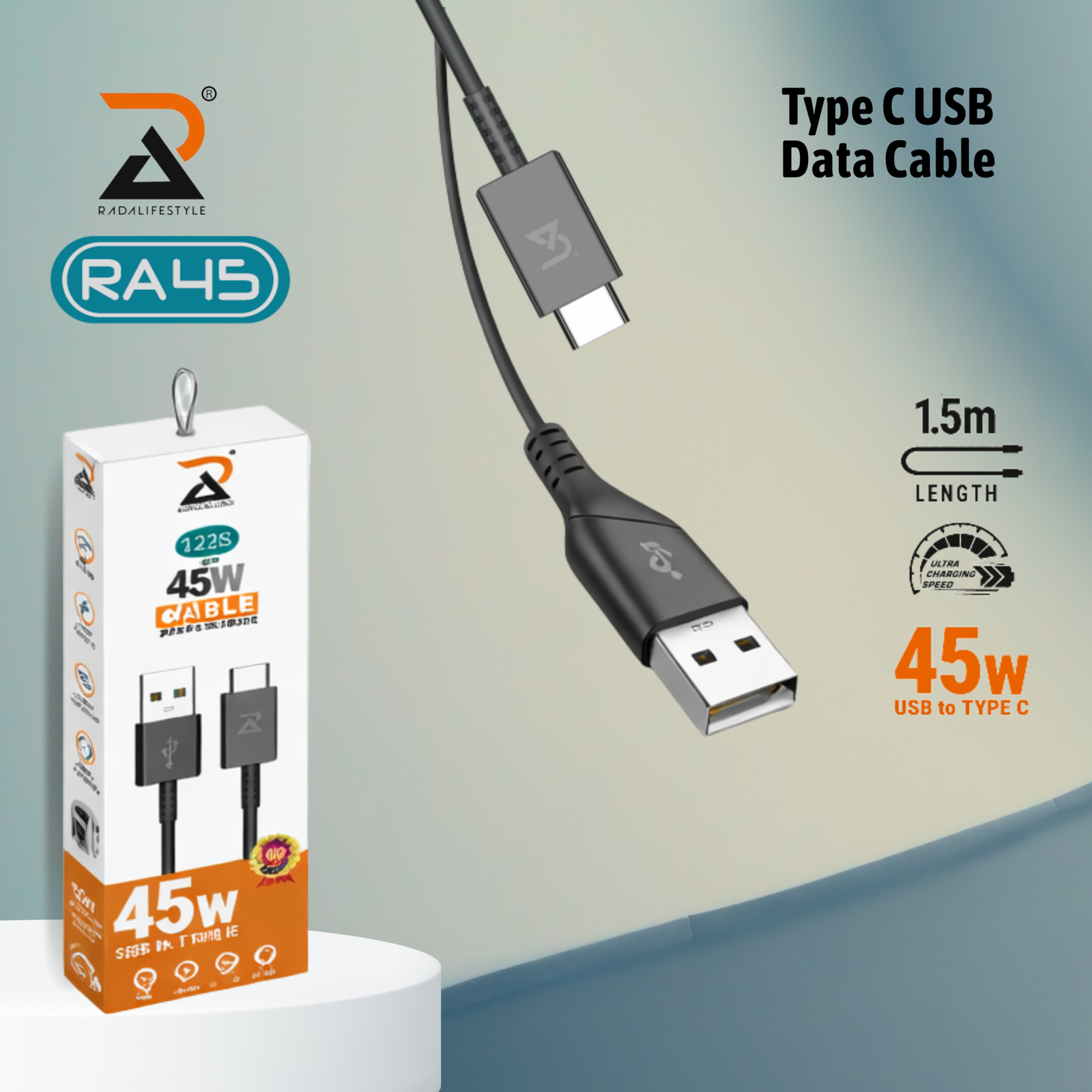 RA45 USB-TYPE C Cable | Fast Charging, High-Speed Data Cable 45W