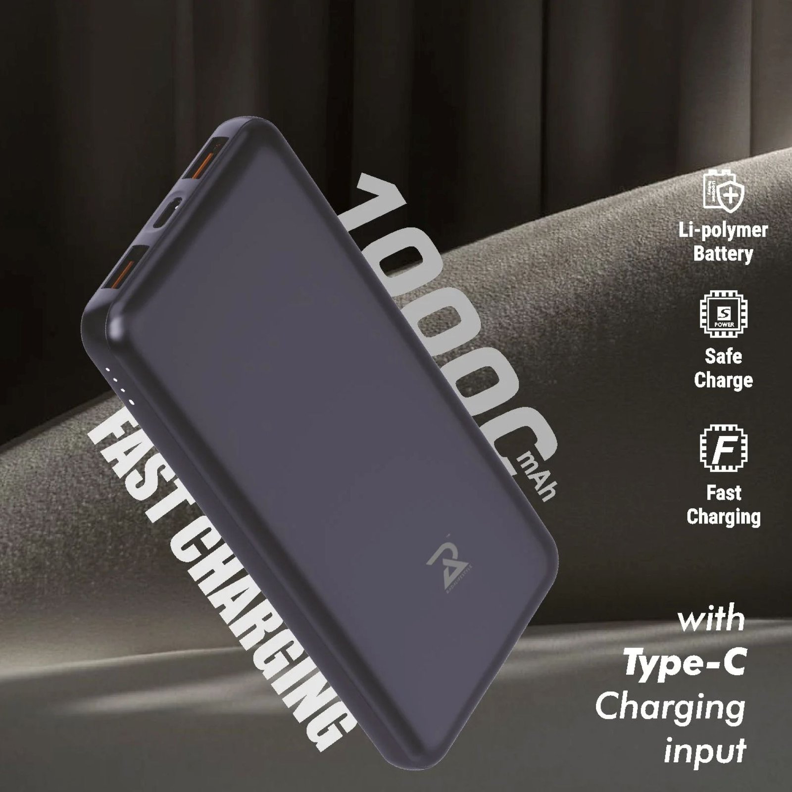Compact & Powerful 10,000 mAh Power Bank On-the-Go.