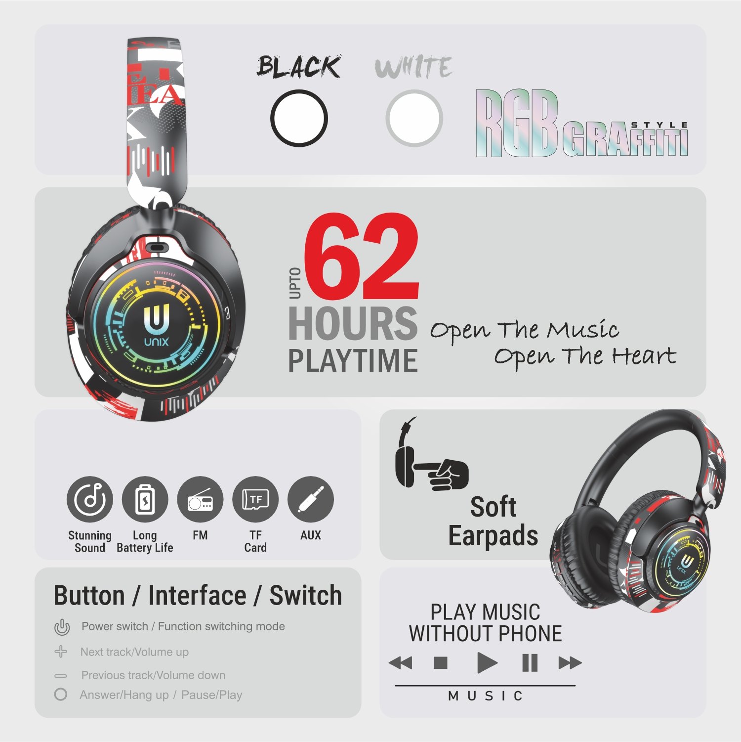Experience power, performance, and personality with the UNIX EPIC Wireless Headset — a perfect fusion of style and superior sound. Featuring an RGB Graffiti design, it delivers a bold and dynamic look that stands out wherever you go.
