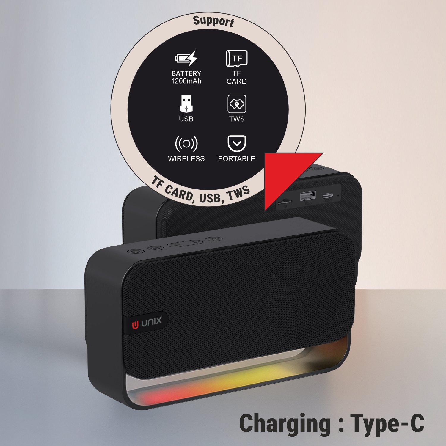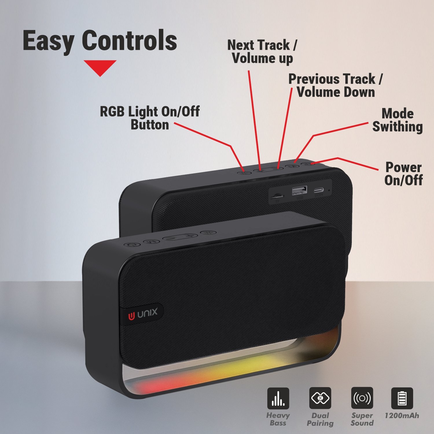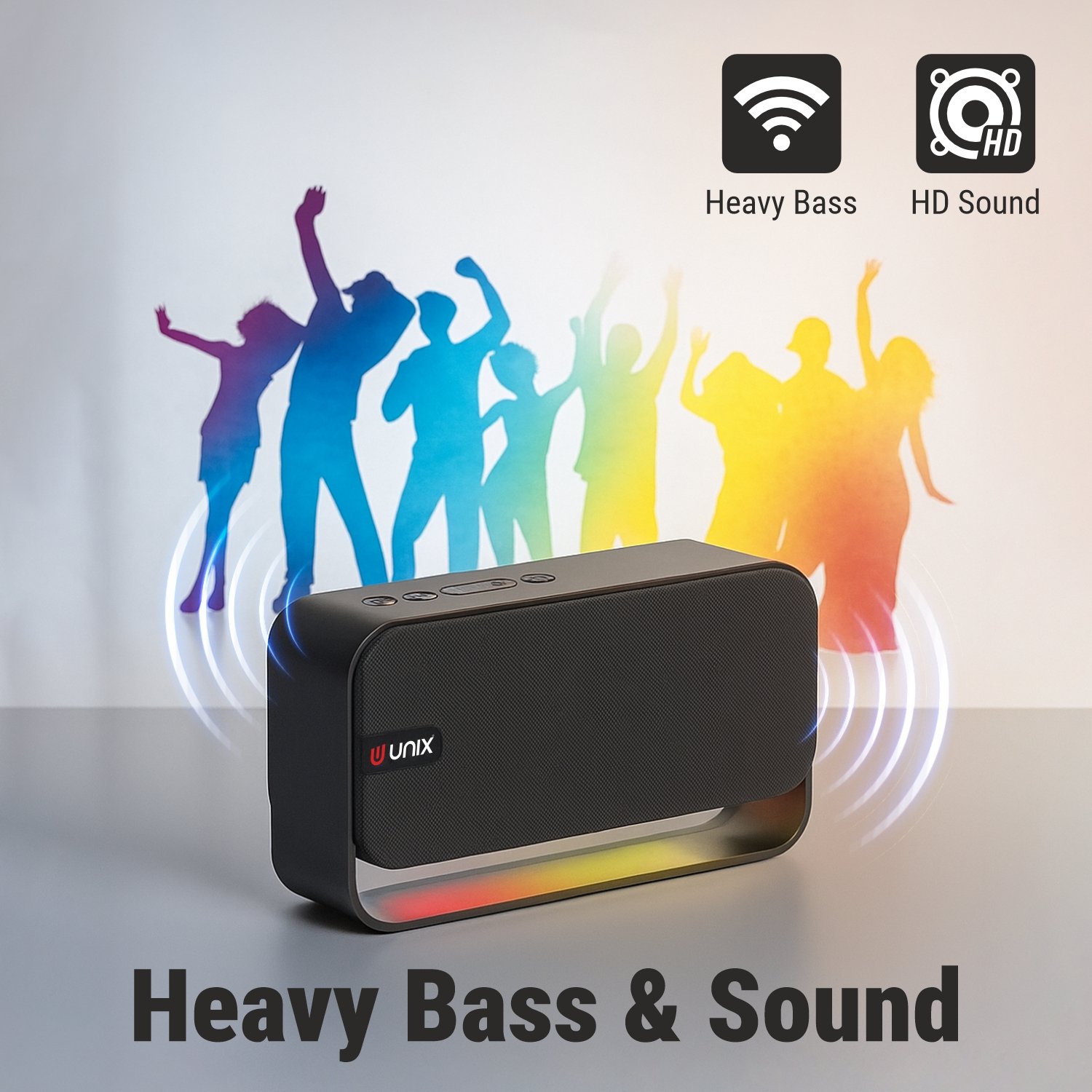 Unix Q Box XB-U66 – 20W RGB Wireless Speaker with TWS, Super Bass & 15H Playtime