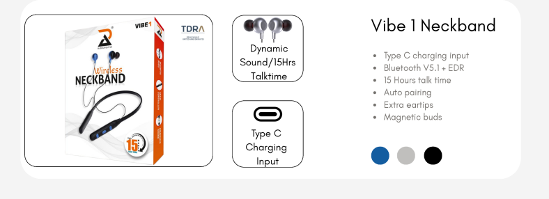 Meet the Rada Vibe 1 Bluetooth Neckband — engineered for active UAE users. Features advanced Bluetooth 5.3, punchy deep bass, comfortable ergonomics, and USB-C quick charging. Designed to elevate workouts, commuting and everyday listening in the city and beyond.